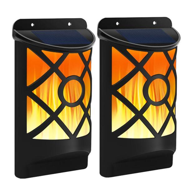 Black Flickering Flame Solar Wall Lights Rechargeable Battery Images |